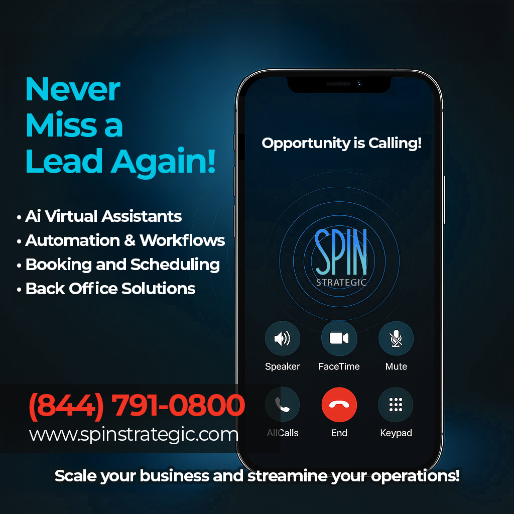 Spin Strategic’s AI Virtual Assistant works around the clock, automating customer interactions, appointment bookings, and follow-ups via text or email. With a voice that mirrors your brand, it delivers fast, professional, and friendly service—helping your business run smoother and more efficiently.